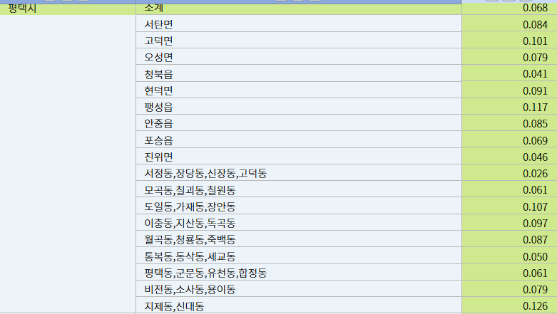 - 평택항·포승지구 등 서부권 산업단지 확장 → 평성읍, 안중읍 등 서부권 지가 상승.