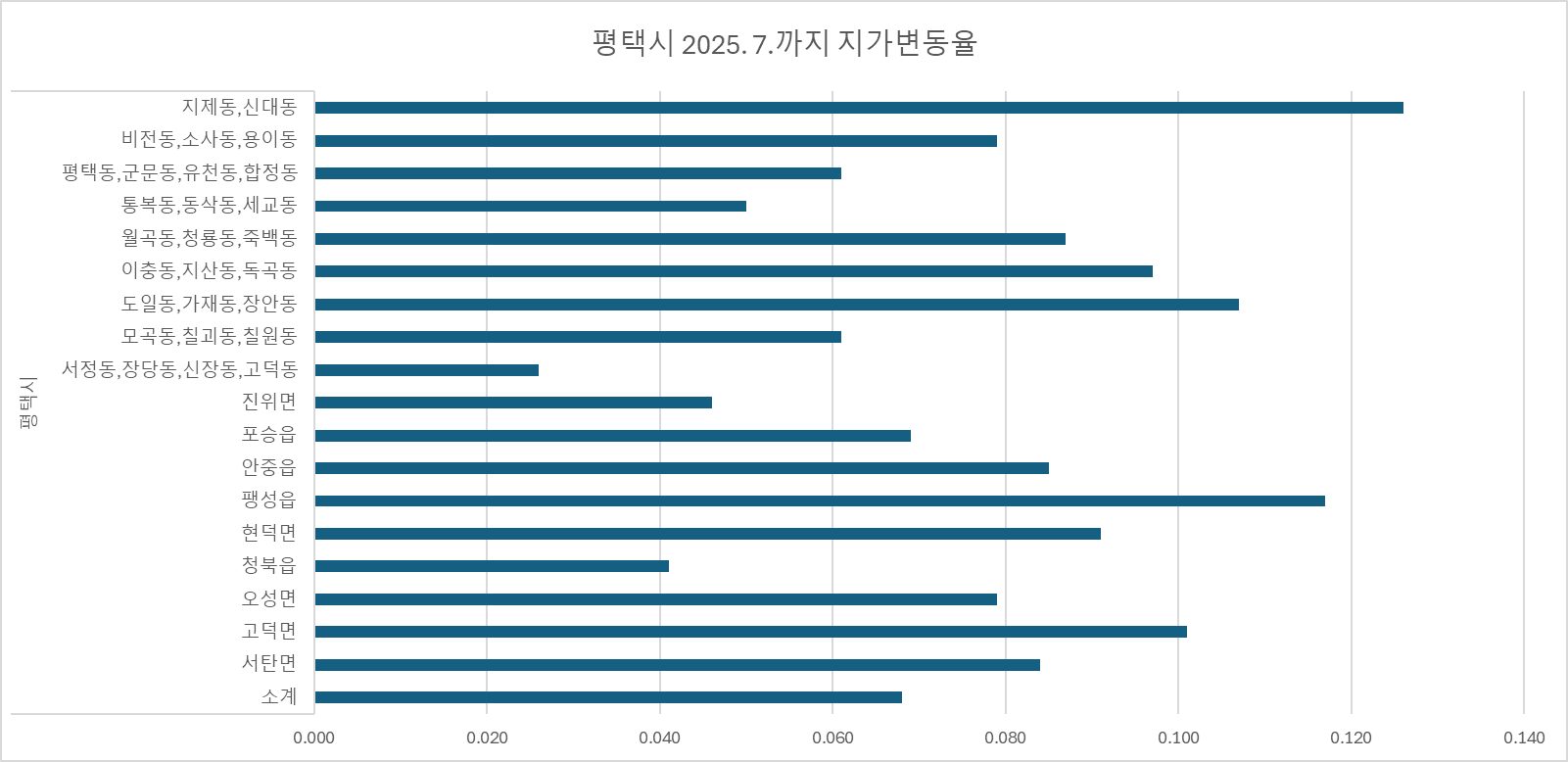 2025년 7월까지 평택시 지가변동률은 지역별 차별화가 뚜렷했습니다.