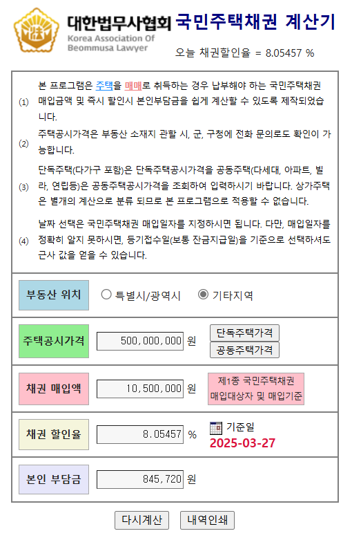 🔍 대한법무사협회 홈페이지에서 국민주택채권 할인율 및 계산기 이용방법