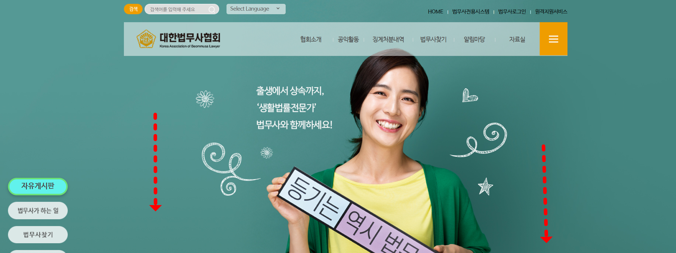 1. 검색사이트에서 "대한법무사협회"를 검색하여 홈페이지에 방문합니다.
