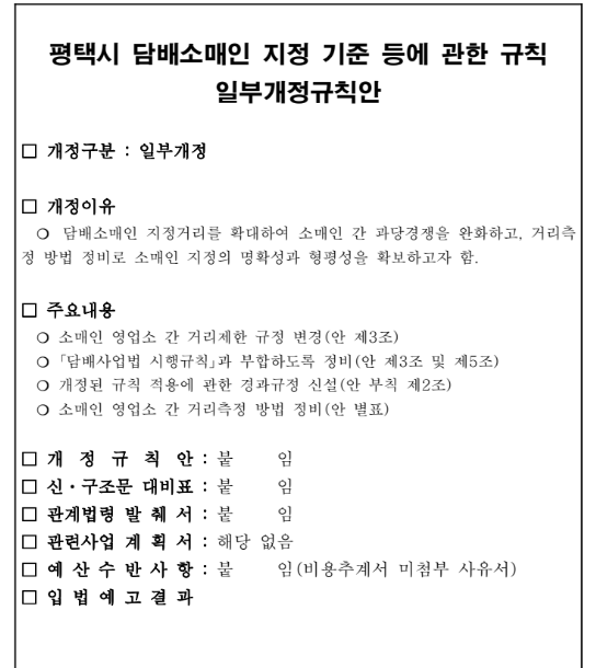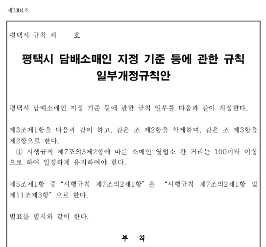 - 기존 담배 소매점이 폐업할 경우, 거리 제한 없이 신규 허가가 가능할 수도 있음