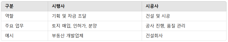 - 개념: 시행사가 기획한 건설 프로젝트를 실제로 시공하는 회사