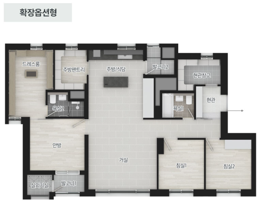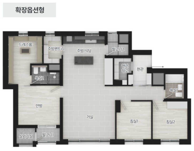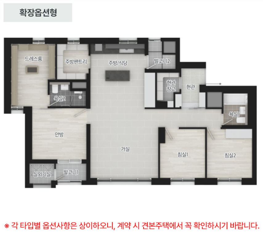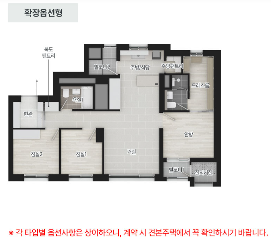 또한, 확장비가 다른 아파트 브랜드에 비해 저렴한 편입니다.