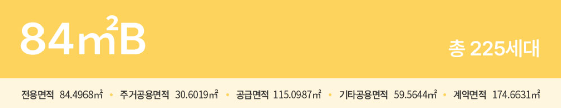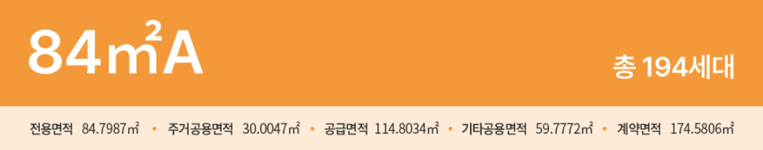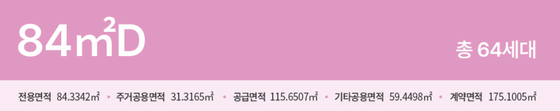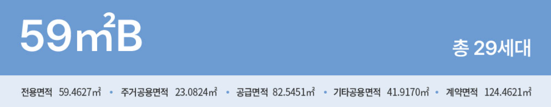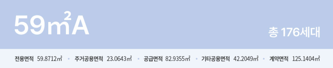 전용면적은 59㎡와 84㎡로 나뉘며, 세부 타입별로는 다음과 같습니다.
