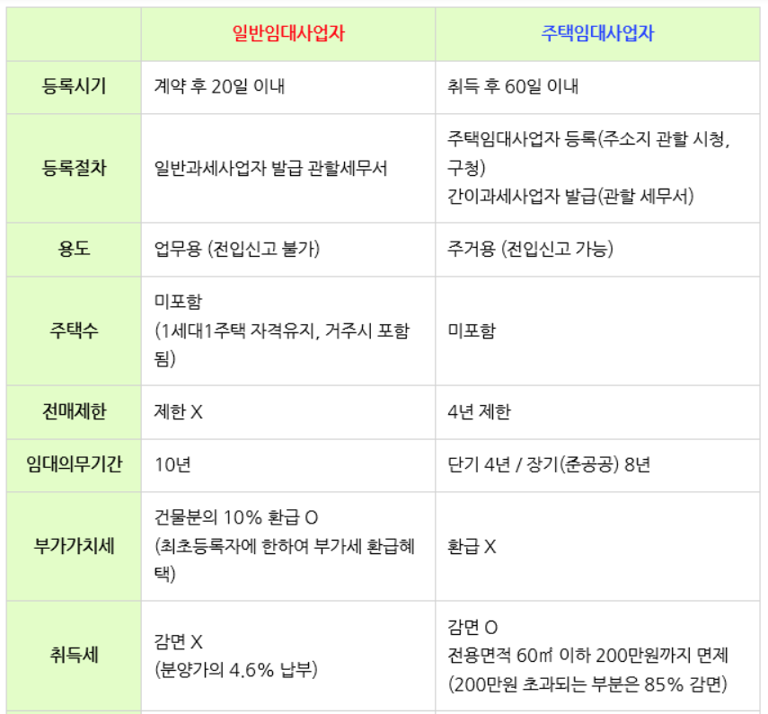 일반임대사업자와 주택임대사업자를