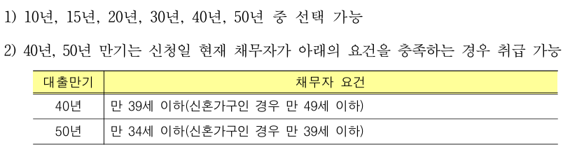- 40년, 50년 => 신청자 조건이 충족 시 가능