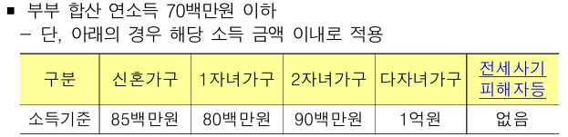 - 부부합산 소득 기준 충족