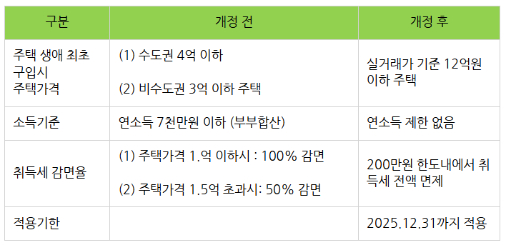 => 생애최초 주택 구입 시 주택가격과
