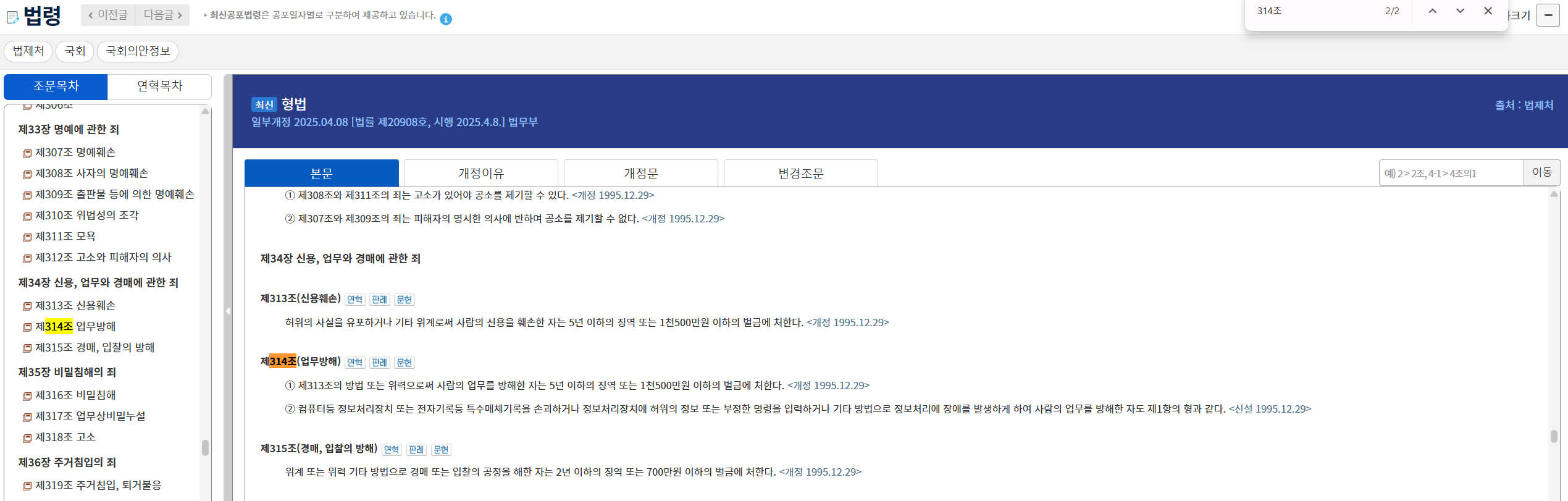 **업무방해죄(業務妨害罪)**는 타인의 정상적인 업무수행을 방해한 경우에 성립하는 범죄로, 형법 제314조에 규정되어 있습니다.