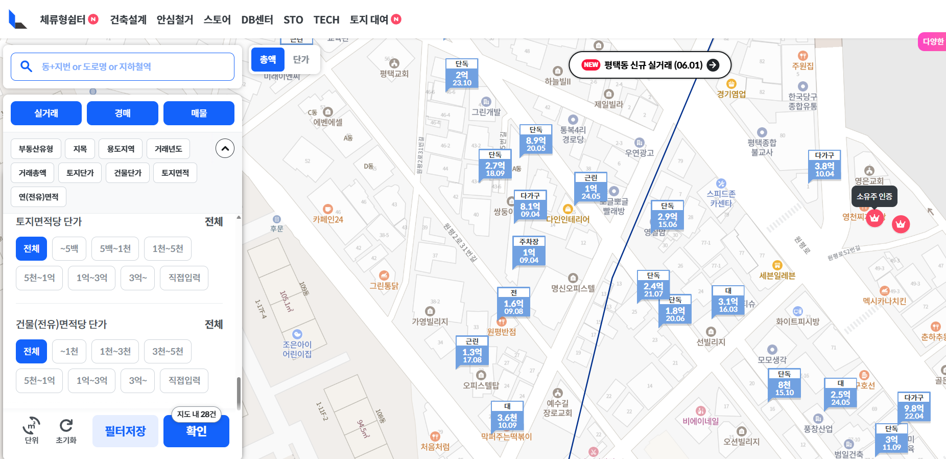 간편하고 빠른 평당가 확인은 땅이야에서,
