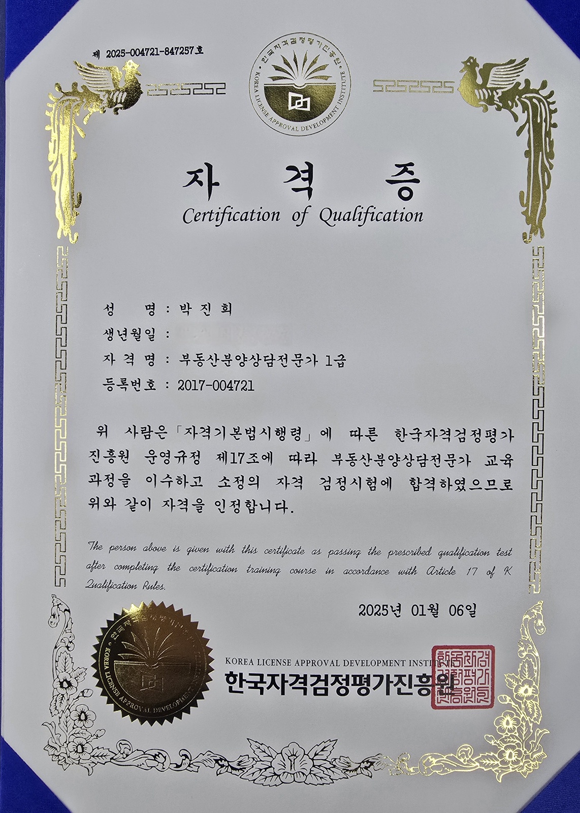 >. 부동산 분양상담사 전문가 1급 자격증 취득