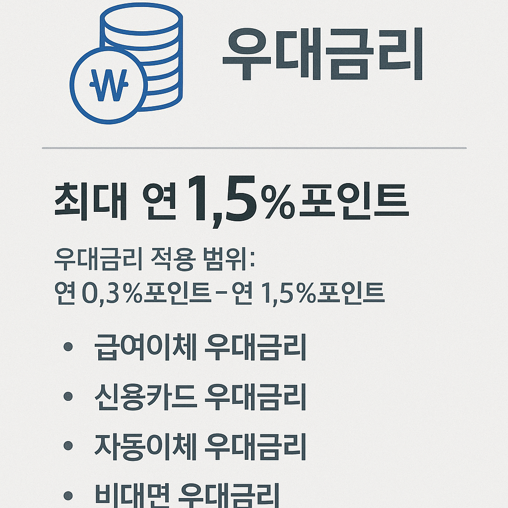 심지어 **같은 항목(예: 급여이체)**이어도 우대금리 적용 폭이 달라질 수 있습니다.