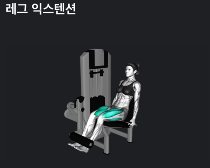 - 레그 익스텐션은 대퇴직근, 외측광근, 내측광근, 중간광근을 고르게 자극합니다.