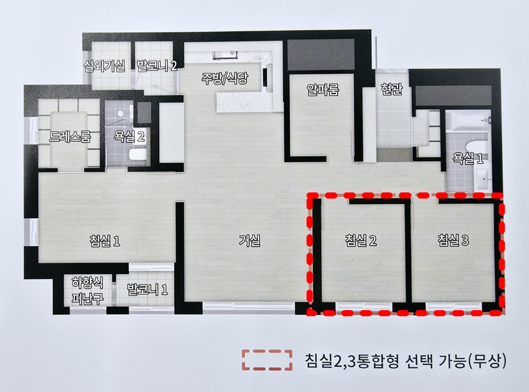 84 전 타입은 고객의 선택시 침실2 + 침실3 을
