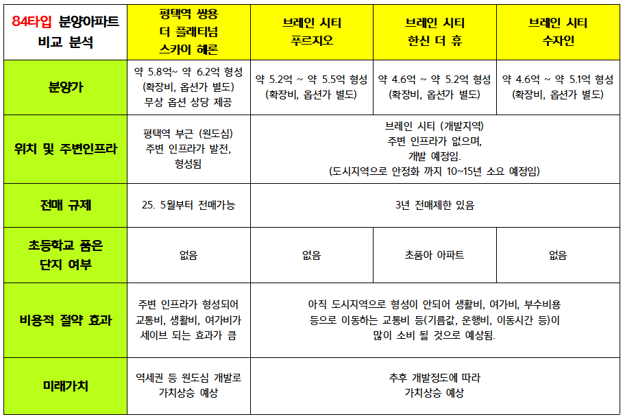 여기서는 평택역 쌍용 더 플래티넘 스카이 헤론 평택분양아파트 84 타입에 대하여