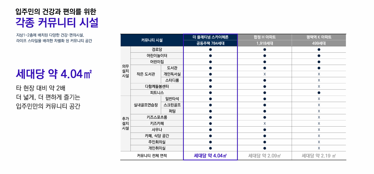 또한, 쌍용 더 플래티넘 스카이 헤론 아파트에서는 당신의 라이프 스타일을 응원하기 때문에 시설부분을 자체적으로 제공 예정입니다.